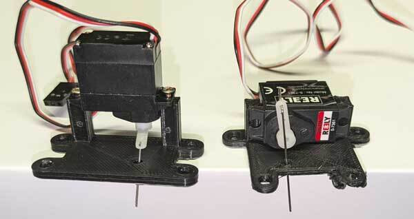 Montage: Beim Stehend sind oben auf dem Pfosten Löcher, diese müssen meinem 1,5mm Bohrer nachgebohrt werden. Beim Liegenden ist der Servo einzulegen und mit einem 1,5mm Bohrer ein Loch gebohrt werden.