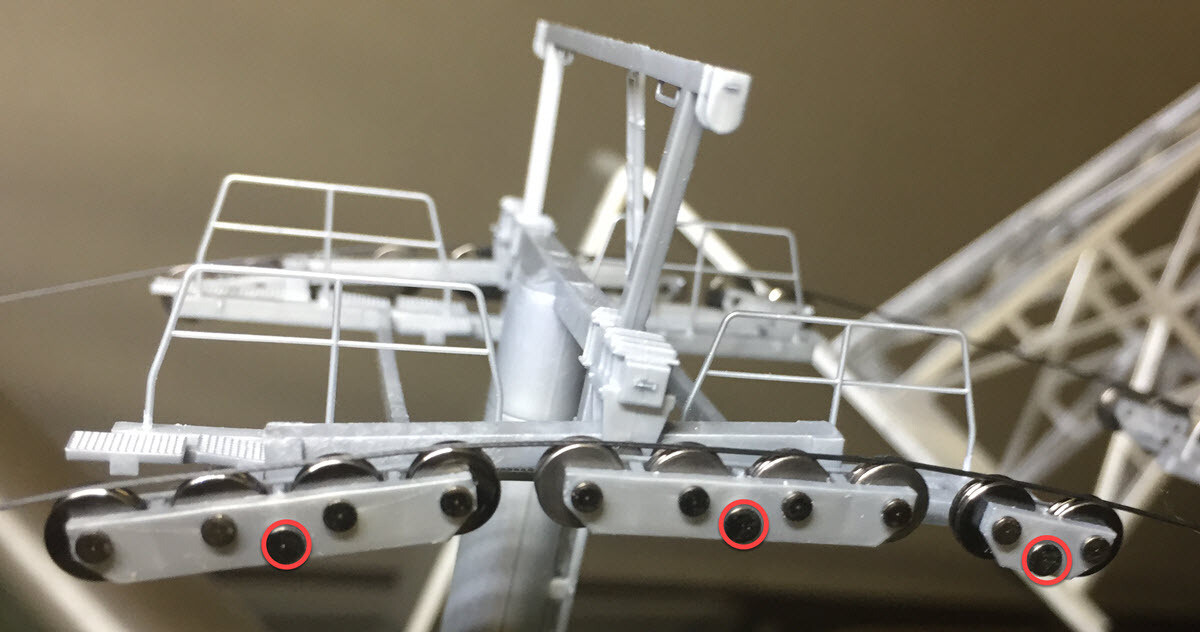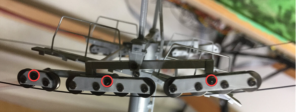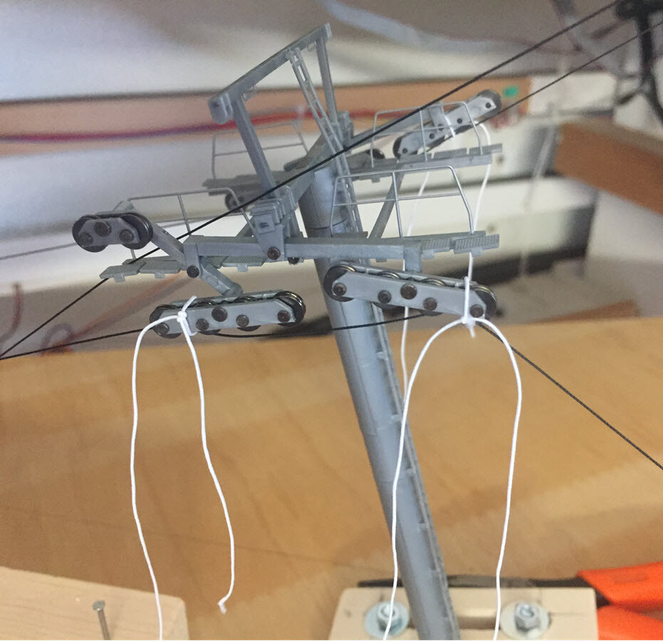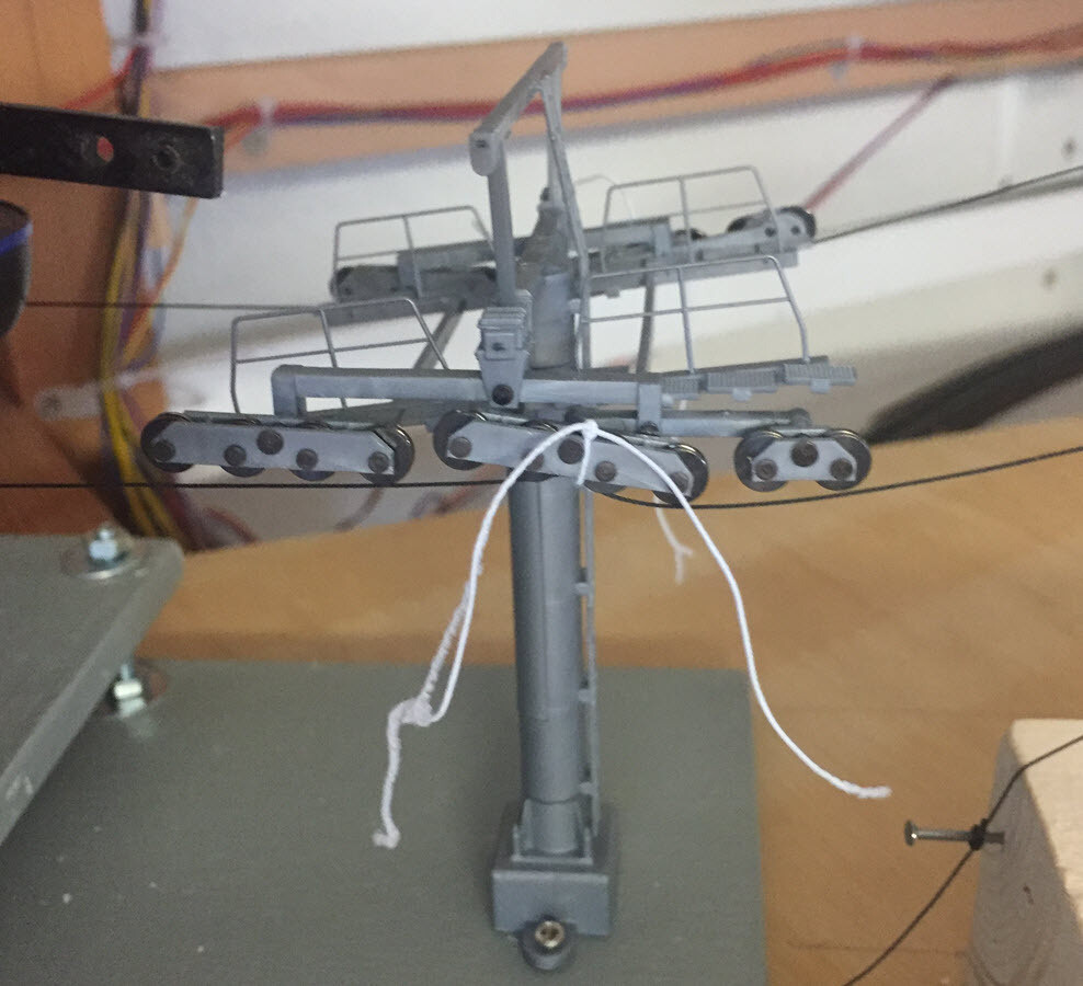 Wichtig: Seilführung oben müssen bei der Batterie die Drehachsen unten sein. Sonst wackeln die Sessel über den Mast stark. In der Bedienungsanleitungen in den Zeichnungen auch so vorgesehen, jedoch fehlt einen Hinweis.